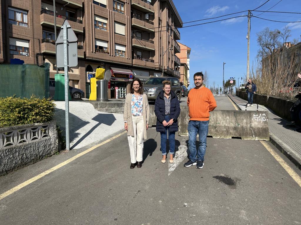 El concejal de Ordenación y Gestión Urbanística, Vivienda y Empleo, Javier Rodríguez, junto a Patricia Antuña, concejala de Comercio y Hostelería, Movilidad y Transporte Público; Teresa Álvarez, concejala de IU, explicó la reordenación del tráfico en la calle La Estación de El Berrón. Tras la instalación de dos barreras divisorias tipo New Jersey, en la bifurcación en la parte alta de la calle, la entrada y salida al parking de la estación se realizarán por el acceso inferior.