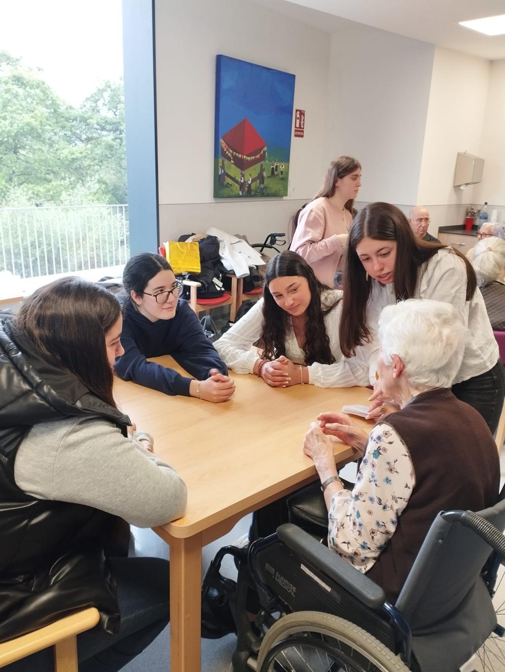 Los alumnos del IES Astures de Lugones que cursan la materia optativa de “Literatura Universal“ tuvieron la oportunidad durante este curso de realizar una actividad intergeneracional con los residentes del Era de Lugones. La iniciativa arrancó en diciembre, cuando los alumnos iniciaron una correspondencia con los residentes; a partir de ese momento, las cartas se sucedieron mensualmente hasta el mes de abril cuando, con motivo de la celebración del Día del Libro, los escolares acudieron a la residencia.