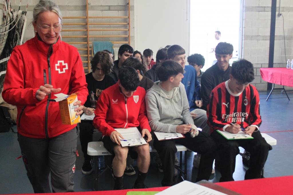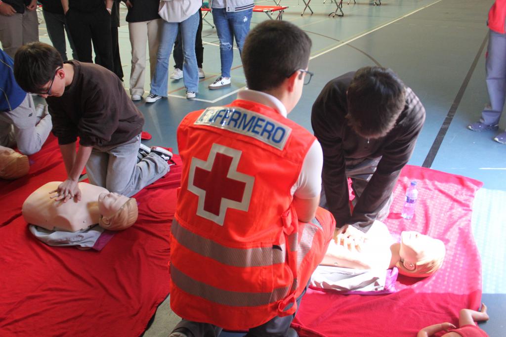 Con la idea de hacer partícipe a la población local, recibieron la visita de los alumnos de 1º de bachillerato del IES Noreña, que fueron pasando por las diferentes áreas y finalizaron la RCP.
