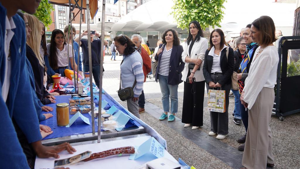 La concejala de Políticas Sociales y Atención a las Personas, María José Fernández, y la concejala de Comercio y Hostelería, Movilidad y Transporte Público, Patricia Antuña, acompañadas por Mónica Barettino, directora del Área Educación Emprendedora de Valnalón, Eva Arroyo, directora del Sabadell Herrero en Siero, así como por Marta Piquero, responsable del área de Empresa y Emprendimiento del Ayuntamiento de Siero, visitaron el Mercado de Cooperativas Escolares celebrado en la mañana del martes 27 de mayo, en las inmediaciones de la Plaza Cubierta de Pola de Siero.