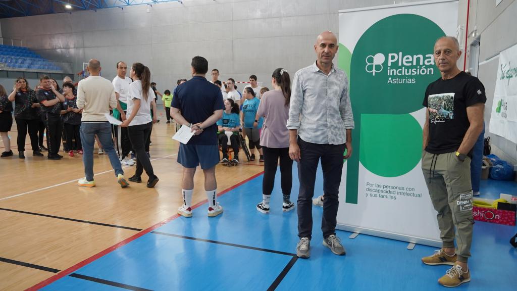 El concejal de Deporte, Salud y Protección contra Incendios, Jesús Abad, junto a Virginio Ramírez, director del Patronato Deportivo Municipal, asistieron a la III Jornada Pruebas Motrices, que organizó la asociación Plena Inclusión Asturias en colaboración con Special Olympics y el Ayuntamiento de Siero, en el polideportivo nuevo de La Pola.