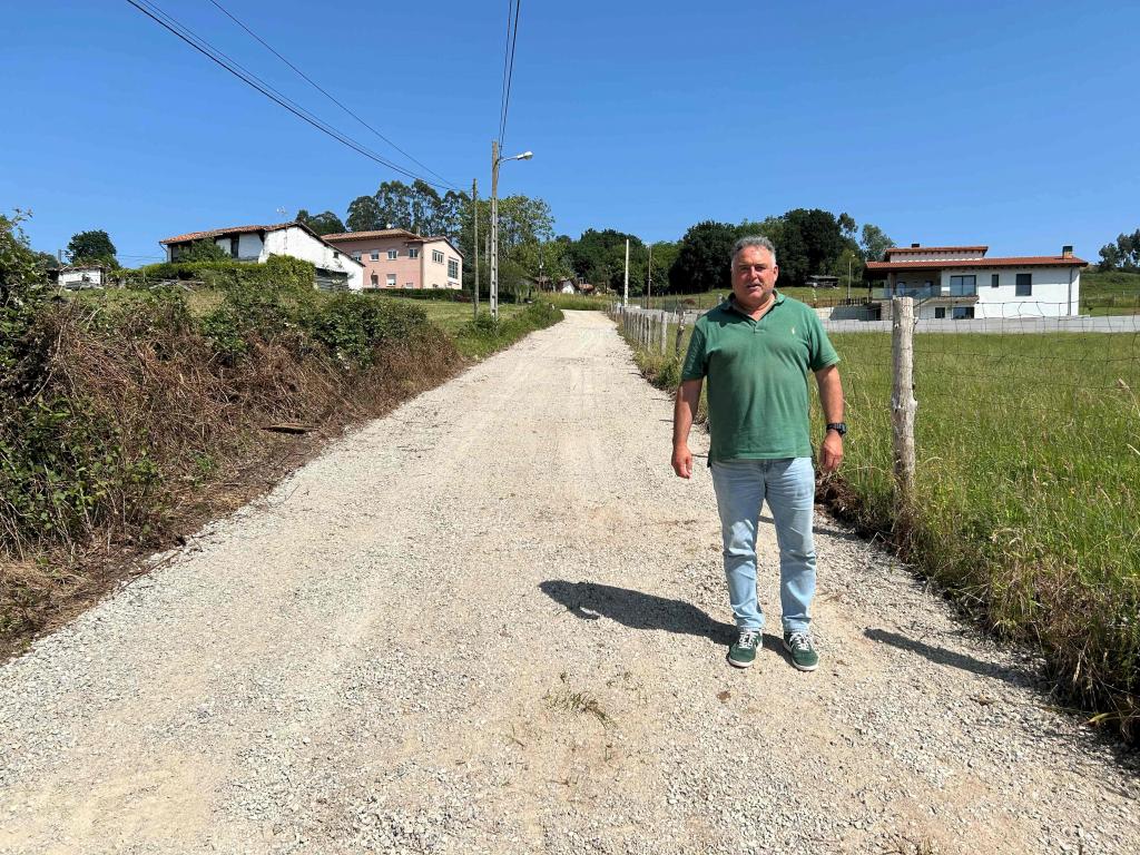 El concejal de Caminos en el Medio Rural, Alumbrado Público y Zonas Verdes, Alejandro Villa, visitó los trabajos realizados en los accesos a Llorianes, en la parroquia de Valdesoto. Se trata de una zona con varias viviendas en desarrollo, cuyos accesos se han regularizado con zahorra para facilitar el tránsito de los vecinos.