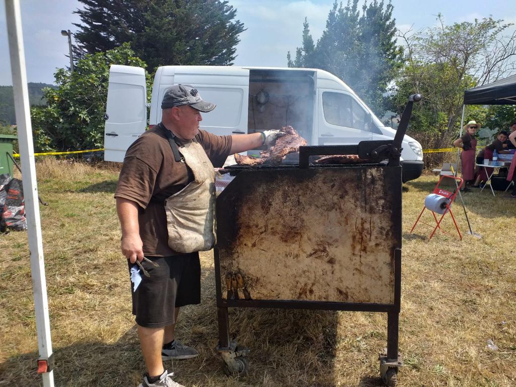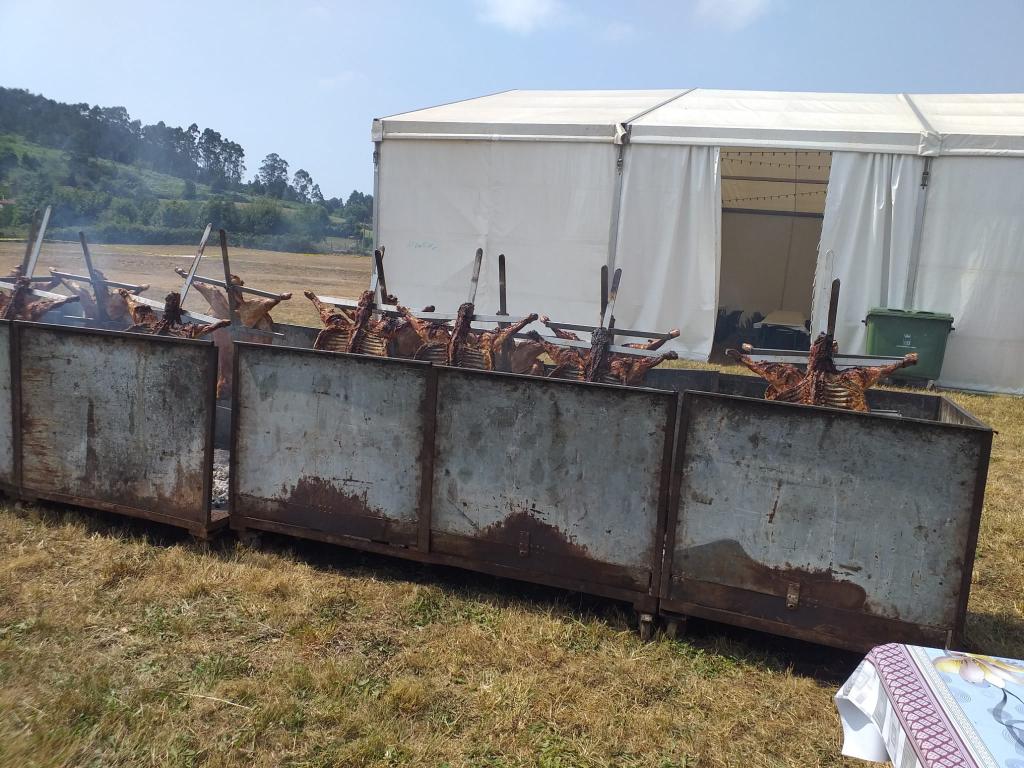 La jornada estuvo marcada por la actualidad en Llanera, la noticia de la dimisión del alcalde Gerardo Sanz y el concejal de Cultura Iván Pérez que se acababa de anunciar corría como la pólvora (la de los voladores que se tiraban en el campo de la iglesia). Ya extrañaba a muchos que nadie del equipo de gobierno estuviera presente en la misa como de costumbre, sí lo estaban concejales del PP. Los corrillos primero a la sombra del tejo y más tarde vermú en mano no se hicieron esperar, todos con los móviles siguiendo a la prensa, opiniones de todo tipo claro, pero siempre con la cordialidad de un pequeño pueblo que da todo lo mejor para que sus fiestas sean familiares y guapas. Tras la carpa se asaban 13 corderos y la IV gran comilona estaba a punto de comenzar. Que el mundo se pare un rato y les deje disfrutar.