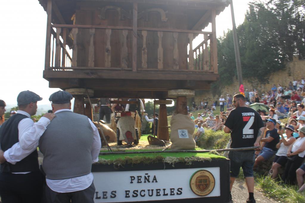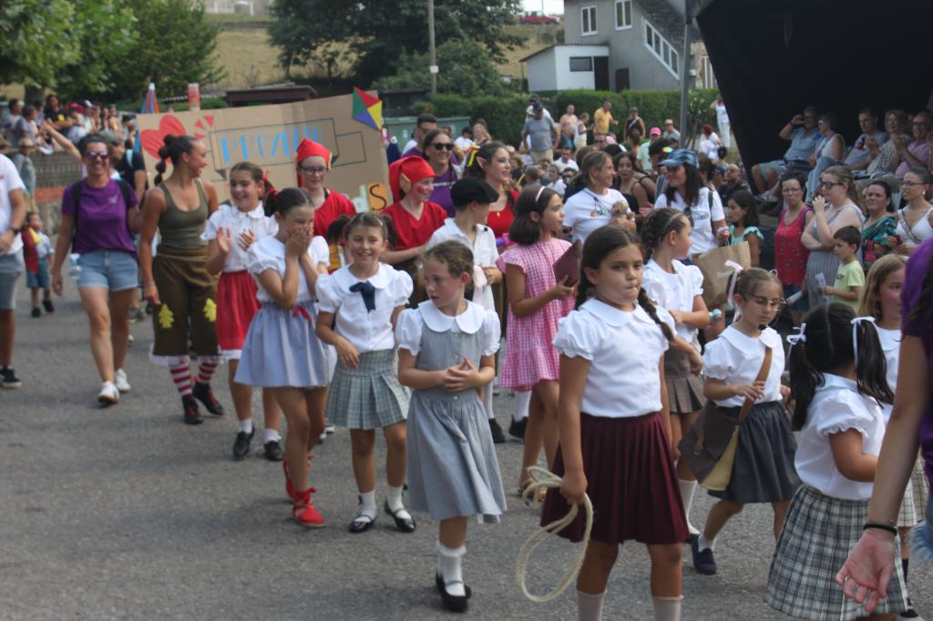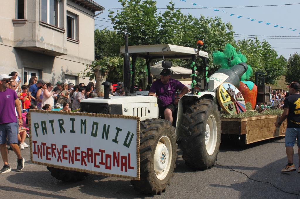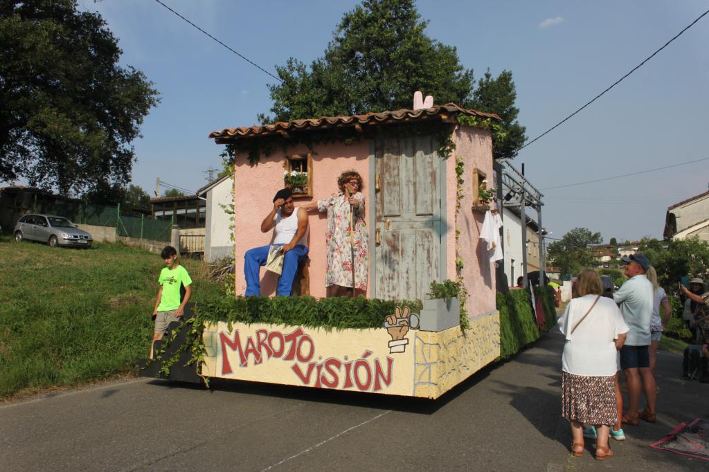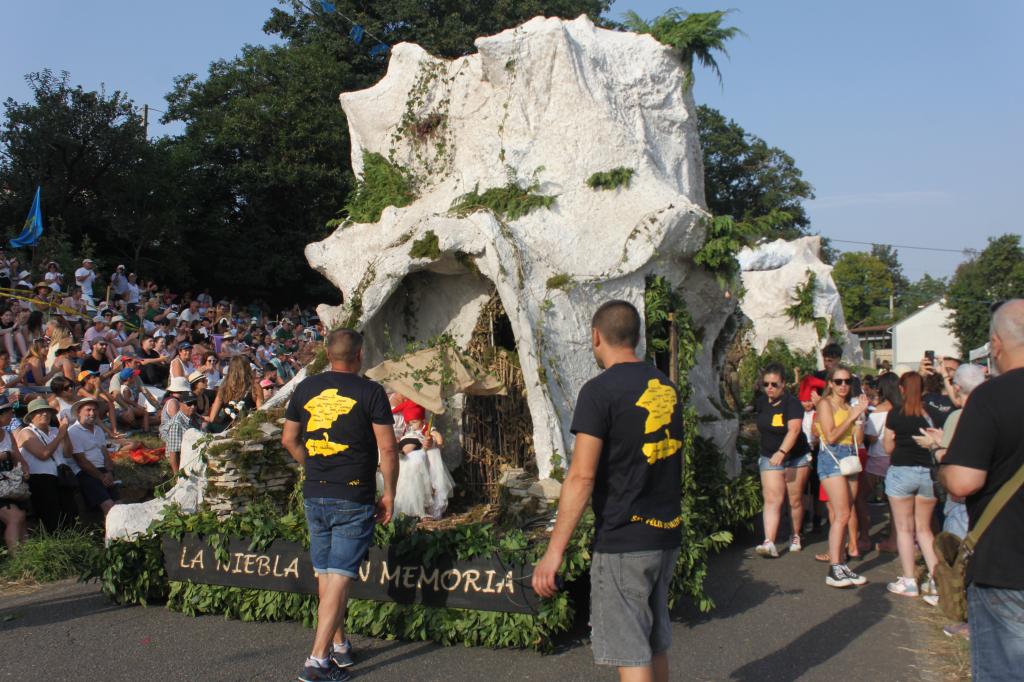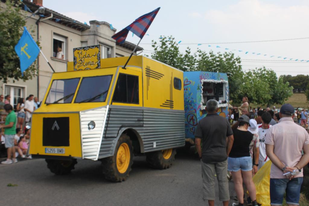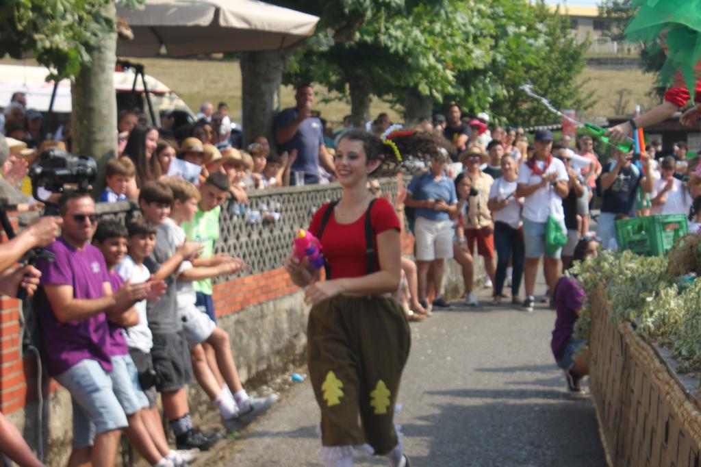 Fueron miles las personas que disfrutaron de las 10 carrozas y de la música de las charangas y la Real Banda de Gaitas Ciudad de Oviedo. La primera en desfilar fue la de la Peña Los Escolinos bajo el título “Patrimonio Interxeracional”, donde Marga y su nieta recordaban que tiempos pasados fueron mejores, esta es la primera vez que está peña de niños y niñas de la localidad compiten, porque el pasado año desfilaron, pero no participaron en el Concurso. Acabaron su actuación demandando que Valdesoto sea Pueblo Ejemplar. La Peña Cotiellos presentó su carroza “IA Mi que Pinón”, donde se mezclaban los principales personajes de los tebeos de Alfonso Iglesias, con la Inteligencia Artificial.