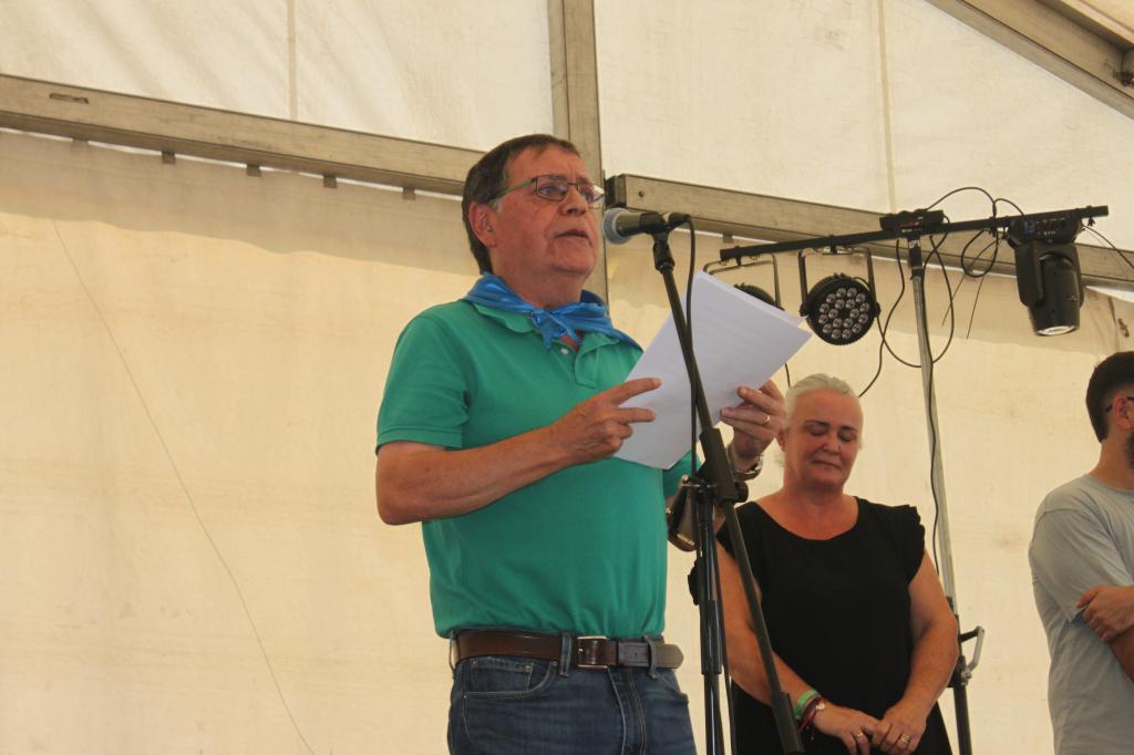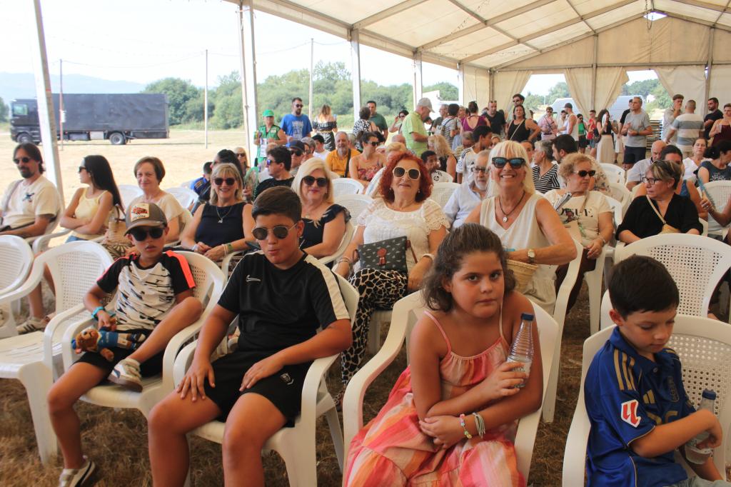 A las 12 horas dio comienzo la lectura del pregón de las fiestas de Lugo de Llanera, que este año fue leído por José Luis Delgado “Campomanes”, pero antes se guardó un minuto de silencio por el vecino recientemente fallecido, Jesús. Fueron muchos los vecinos que se acercaron a la carpa para oír el pregón, a pesar de estar a casi 40 grados de temperatura.