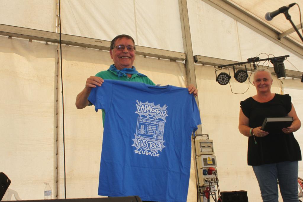 La alcaldesa en funciones, Eva María Pérez, y el presidente de la Asociación Cultura y de Festejos Amigos de Lugo, David Lobato, hicieron entrega de una placa conmemorativa y una camiseta de las fiestas.