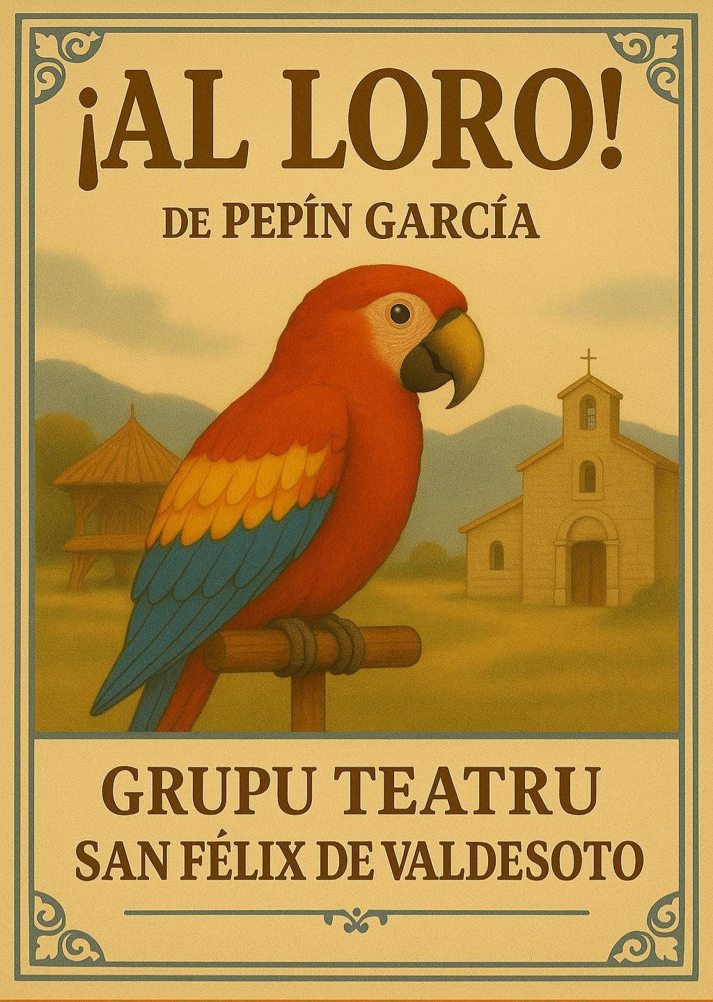 El Grupo de Teatro San Félix de Valdesoto estrena su obra “¡Al loro!” de Pepín García, en el Teatro Prendes de Candás, el sábado 23 de agosto a las 21 horas. Es una obra inédita, de teatro popular, donde se refleja la tradición asturiana, escrita en llingua asturiana por su compañero Pepín García, quien también ejerce de director junto con Nacho Fernández.