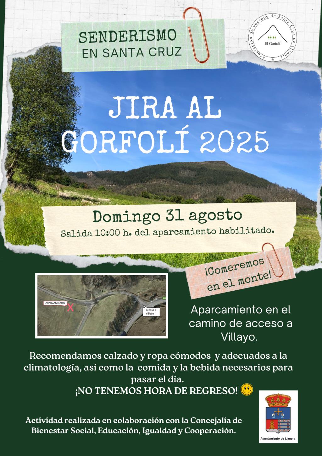 El próximo domingo 31 de agosto, la Asociación de Vecinos de Santa Cruz de Llanera organiza la Jira al Gorfolí 2025, una actividad abierta a toda la vecindad de Llanera y sus alrededores.