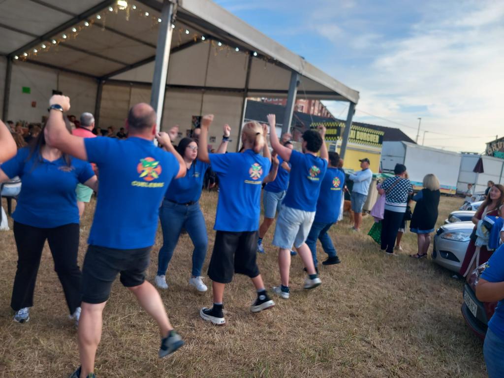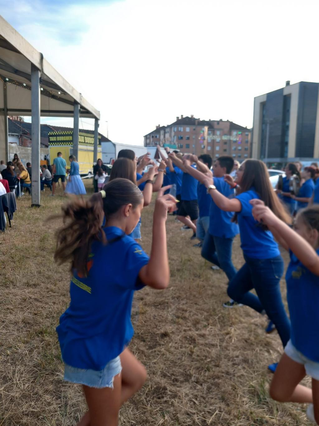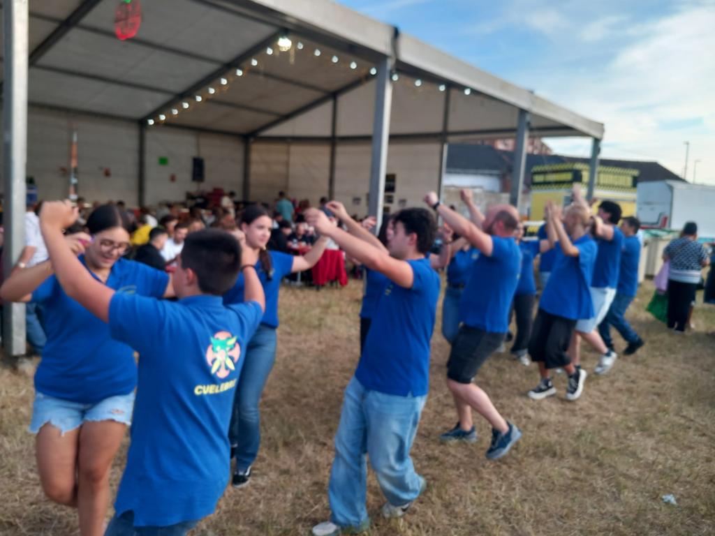 El grupo folclórico Cuélebre amenizó el pasado jueves el campeonato de Tute y Parchís de las fiestas de Santa Isabel de Lugones. Bailaron y tocaron diferentes piezas en el mismo prao de la fiesta, para animar el ambiente.