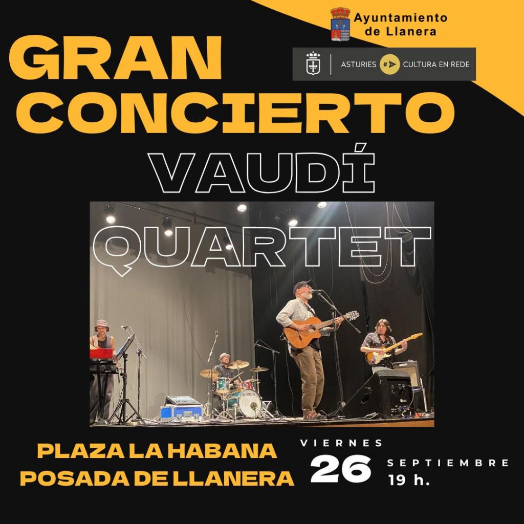 El próximo viernes 26 de septiembre, a las 19 horas, el Espacio Escénico Plaza La Habana acogerá el concierto de Vaudí Quartet, dentro del programa Asturies Cultura en Rede – Música, impulsado por el Principado de Asturias, en colaboración con el Ayuntamiento de Llanera.