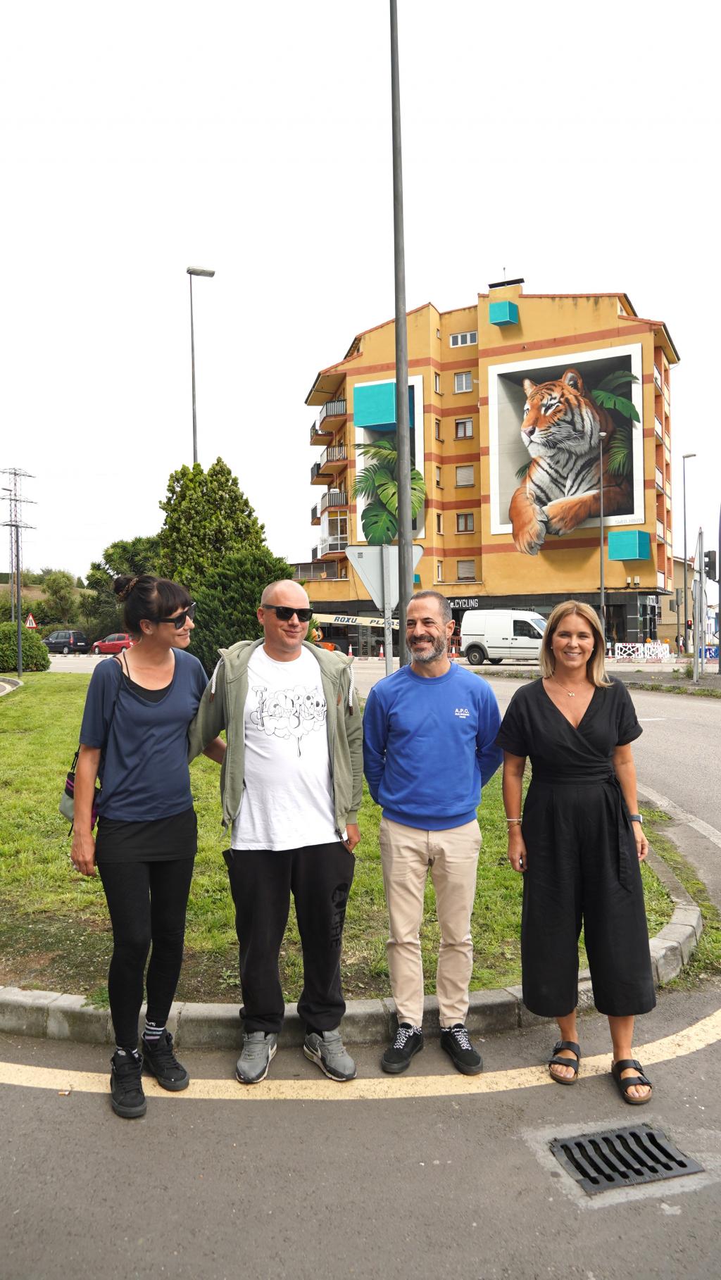 El alcalde de Siero, Ángel García, y la concejala de Educación, Juventud e Igualdad, Eva Iglesias, acudieron a la finalización de las labores de pintura del tercer mural del programa Muralia 2025. En esta ocasión, se ha realizado en la fachada del edificio Cuatro Vías, ubicado en la N-634 en El Berrón. Los encargados de esta obra ha sido la Crew de artistas NIKITA 5.7, que plasmaron un tigre selvático en 3D. La actuación ha contado con un plazo de ejecución de una semana.