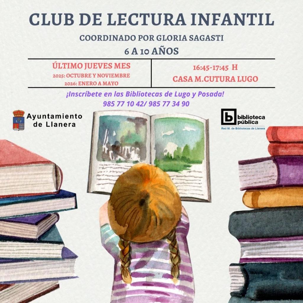 El Ayuntamiento de Llanera, a través de la concejalía de Cultura, Casa Municipal de Cultura-Red Municipal de Bibliotecas, acaba de abrir el plazo de inscripciones para los clubes de Lectura Infantil y Juvenil, que se desarrollarán durante los meses de octubre y noviembre de 2025, y de enero a mayo de 2026.