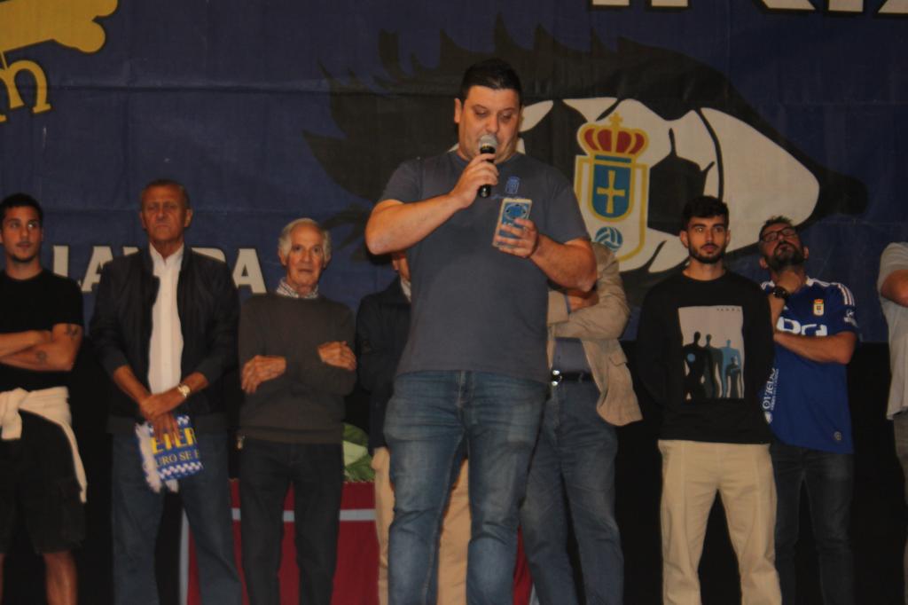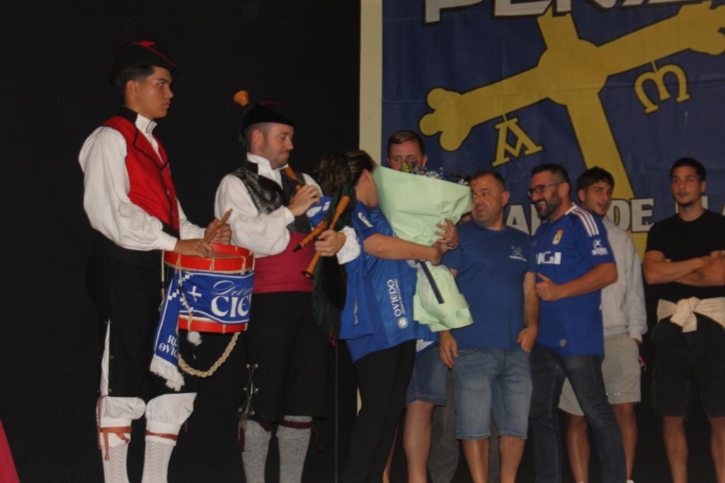 Manuel Paredes dio las gracias a todos los socios por dar siempre su apoyo y recordó que todos los aniversarios este año son de primera, tras el ascenso del club azul. Los veteranos y los jugadores del Vetusta también mostraron su agradecimiento por invitarles al evento. Por su parte, la alcaldesa recordó lo difícil que es llevar una peña adelante y les felicitó por su 13 aniversario, animándolos a seguir.