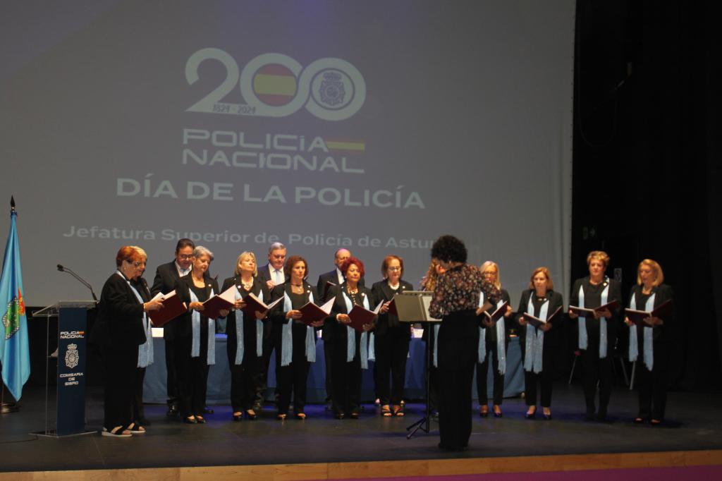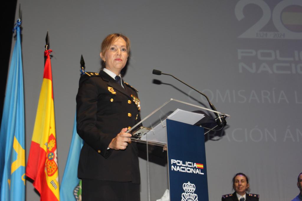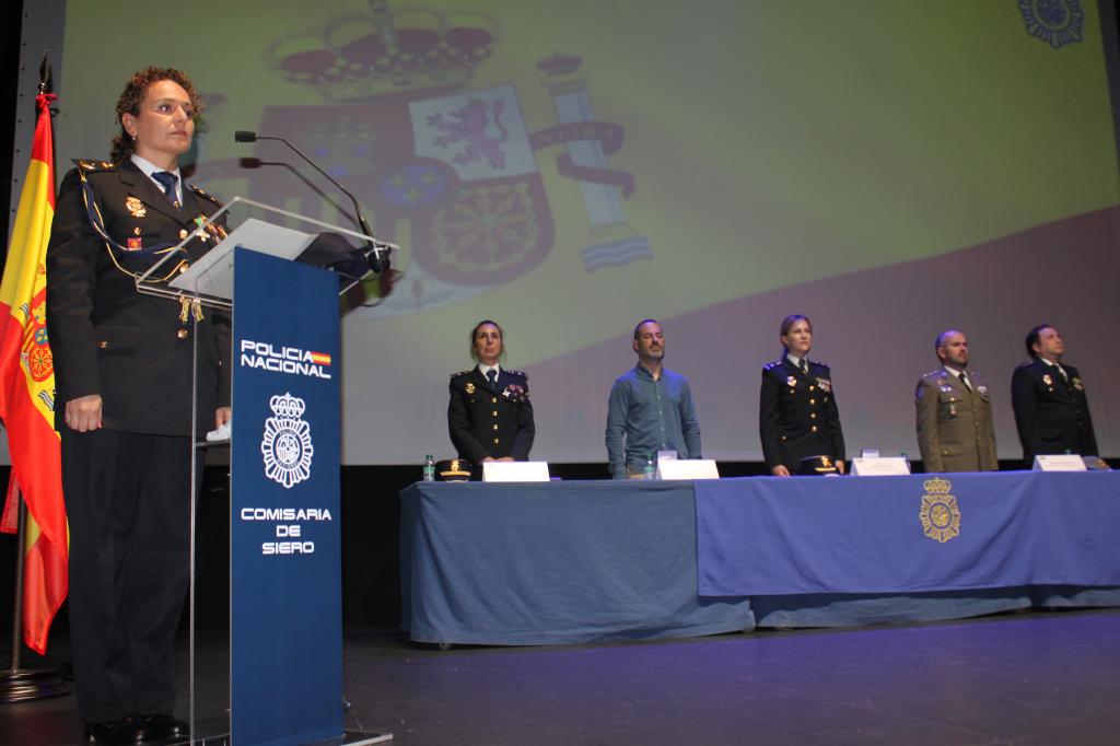 La Inspectora Jefa, Jefa de la Brigada Local de Seguridad Ciudadana y Jefa Occidental de la Comisaría de Siero, Ana Álvarez García, felicitó a los agentes que recibieron la condecoración al ingreso en la Orden del Mérito Policial. “Son el reconocimiento al compromiso, dedicación y profesionalidad que habéis demostrado a lo largo de vuestra carrera. No es una meta final, sino un impulso para que continuéis trabajando en búsqueda de la excelencia cada día. Rubén, enhorabuena por tu dedicación y tu buena disposición en el trabajo. Has desempeñado varios puestos a lo largo de tus 23 años de carrera y me consta que en todos ellos has realizado una excelente labor, implicándote en el trabajo y esforzándote cada día por mejorar. Adrián, es muy gratificante trabajar con personas que siempre están dispuestas a firmar el hombro cuando se les necesita, siendo parte de la solución ante las dificultades. Y espero poder contar contigo muchos años más. Desde la Comisaría de Siero también queremos reconocer a quienes de diversa forma han colaborado con la Policía Nacional. Centro Comercial Carrefour Azabache, por su esencial ayuda el 28 de abril, día en que los españoles sufrimos el corte de suministro eléctrico. La mayoría de las gasolineras no funcionaban, el combustible de los vehículos se podía agotar dejándolos inservibles. Posibilitó el repostaje de los vehículos policiales de Siero y de Oviedo. Muchas gracias a la Coral Polifónica de San Félix de Lugones, a la agrupación folclórica La Sidrina y al Coro de Argüelles, por su participación en los actos conmemorativos de los 200 aniversarios de la Policía Nacional”, comentó.
