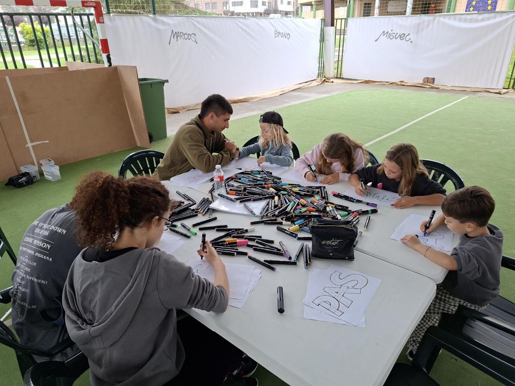 De 11 a 18 horas se desarrolla la exhibición de grafiteros profesionales, el taller de grafiti, y la batalla “Bombing”, a partir de las 18.30 horas. La actividad se realiza por parte del Ayuntamiento de Llanera en colaboración con la Asociación 1961, participan 20 artistas y realizan un taller los niños con una mesa para que dibujen primero con papel, con rotuladores y enseñarles un poco las técnicas, cómo se hacen las letras, los dibujos, el proceso, primero cómo tienen que empezar a hacerlo, y luego plasmarán sus diseños en lonas blancas.