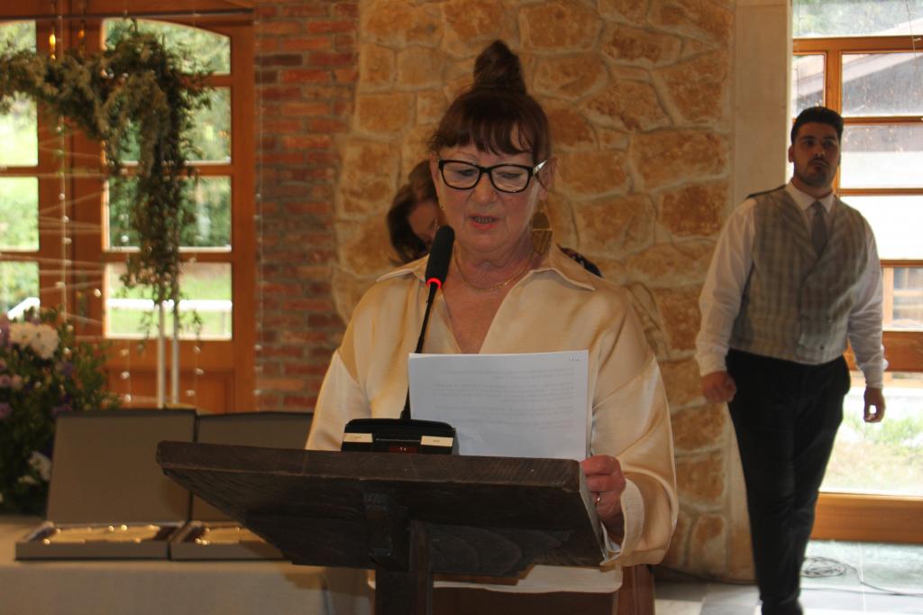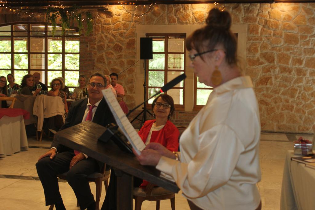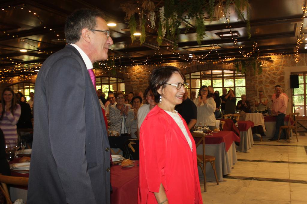 La encargada de presentar el evento fue María Paz Menéndez, quien aseguró a Cristina y Tino que siempre tendrán abiertas las puertas de sus hogares. La presidenta de la Asociación, Charo Menéndez, afirmó que esta comida-homenaje sirvió para celebrar y agradecer los años de dedicación, trabajo y esfuerzo de sus queridos médico y enfermera. “Llegaron a nuestra parroquia, a nuestro centro de salud y se pusieron manos a la obra. Han ejercido su labor día tras día, sin desmayo, con amabilidad, respeto y empatía, algo muy difícil de encontrar hoy en día, en un mundo que corre muy deprisa, en donde valores como los que acabo de mencionar tienen poca prensa y gozan de poca importancia. Ellos han invertido mucho tiempo extra, impagable económicamente y también mucha dedicación, más impagable todavía. Han ido más allá de la profesión y de la vocación convirtiéndose para nosotros en dos seres verdaderamente humanos en el más amplio sentido de la palabra”, afirmó.