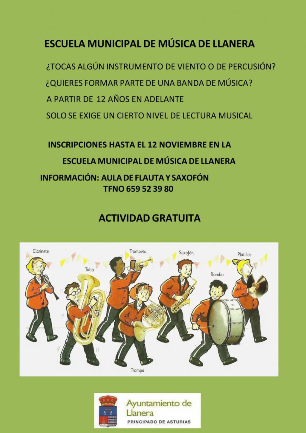 Lo que se pide es tener más de 12 años, tener cierto nivel de lectura musical y ganas de aprender a tocar algún instrumento de viento percusión. Las inscripciones están ya abiertas hasta el 12 de noviembre, en la propia Escuela de Música. La información se da en las aulas de flauta y saxofón, en el teléfono 659523980.