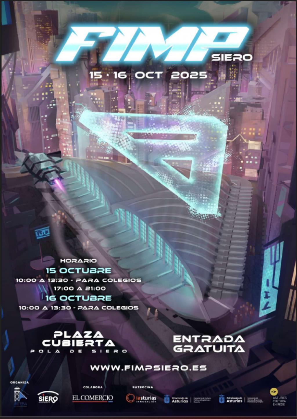 FIMP Siero reunirá a más de 300 escolares en la Plaza Cubierta de Pola de Siero, el evento impulsado por el Instituto Tecnológico de Barredo, dirigido por Héctor Lasheras y el Diario el Comercio, cuenta con el apoyo de la Consejería de Ciencia e Innovación, Cultura, Asturias en Rede y el Ayuntamiento de Siero.
