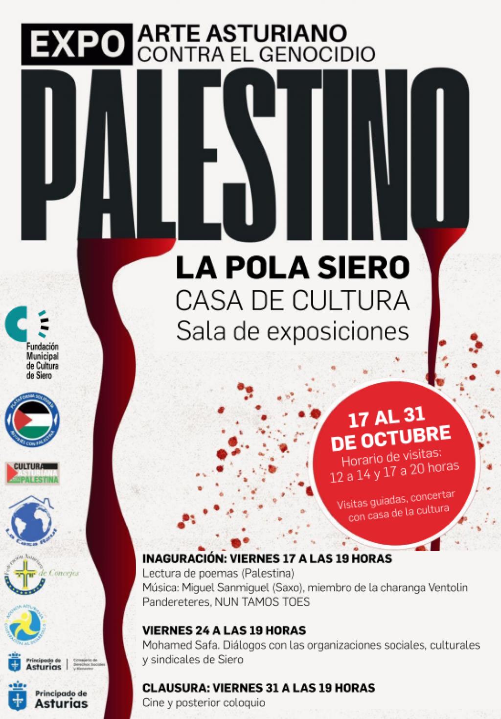 La inauguración será el viernes 17 a las 19 horas. En el acto se leerán poemas sobre Palestina y habrá música a cargo de Miguen Sanmiguel, miembro de la charanga Ventolín, y Panderetes a cargo de NUN TAMOS TOES. El viernes 24 de octubre a las 19 horas habrá diálogos con las organizaciones sociales, culturales y sindicales de Siero.