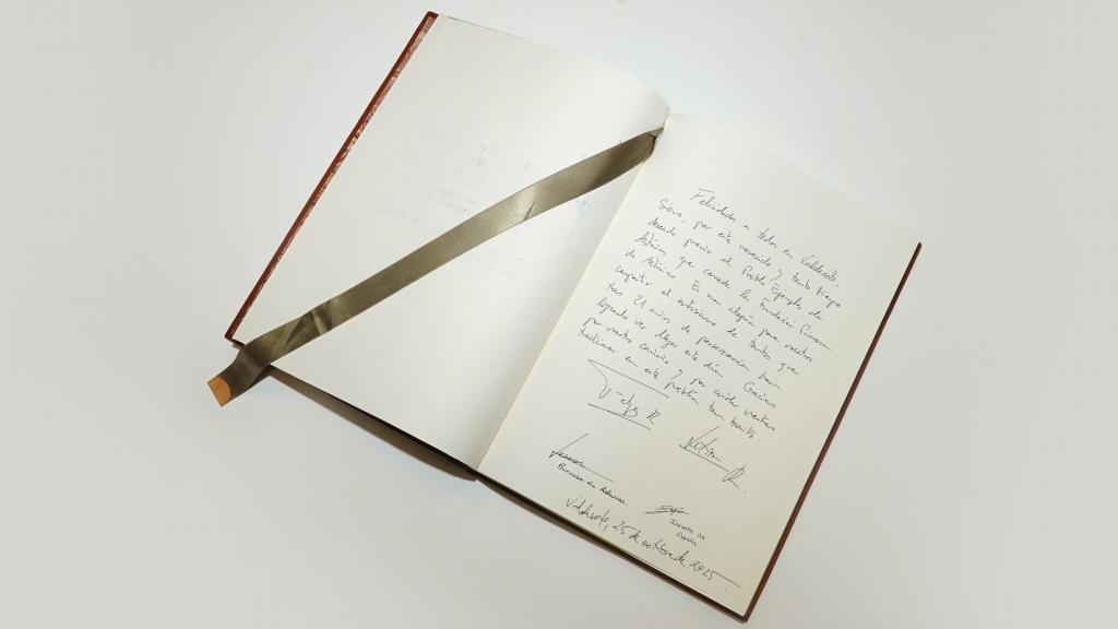 El Rey de España, Felipe VI, firmó en el Libro de Honor del Ayuntamiento de Siero el pasado sábado cuando visitó Valdesoto con motivo de la entrega del Premio al Pueblo Ejemplar, que concede anualmente la Fundación Princesa de Asturias. La misma tuvo lugar los soportales de la Iglesia de San Félix.