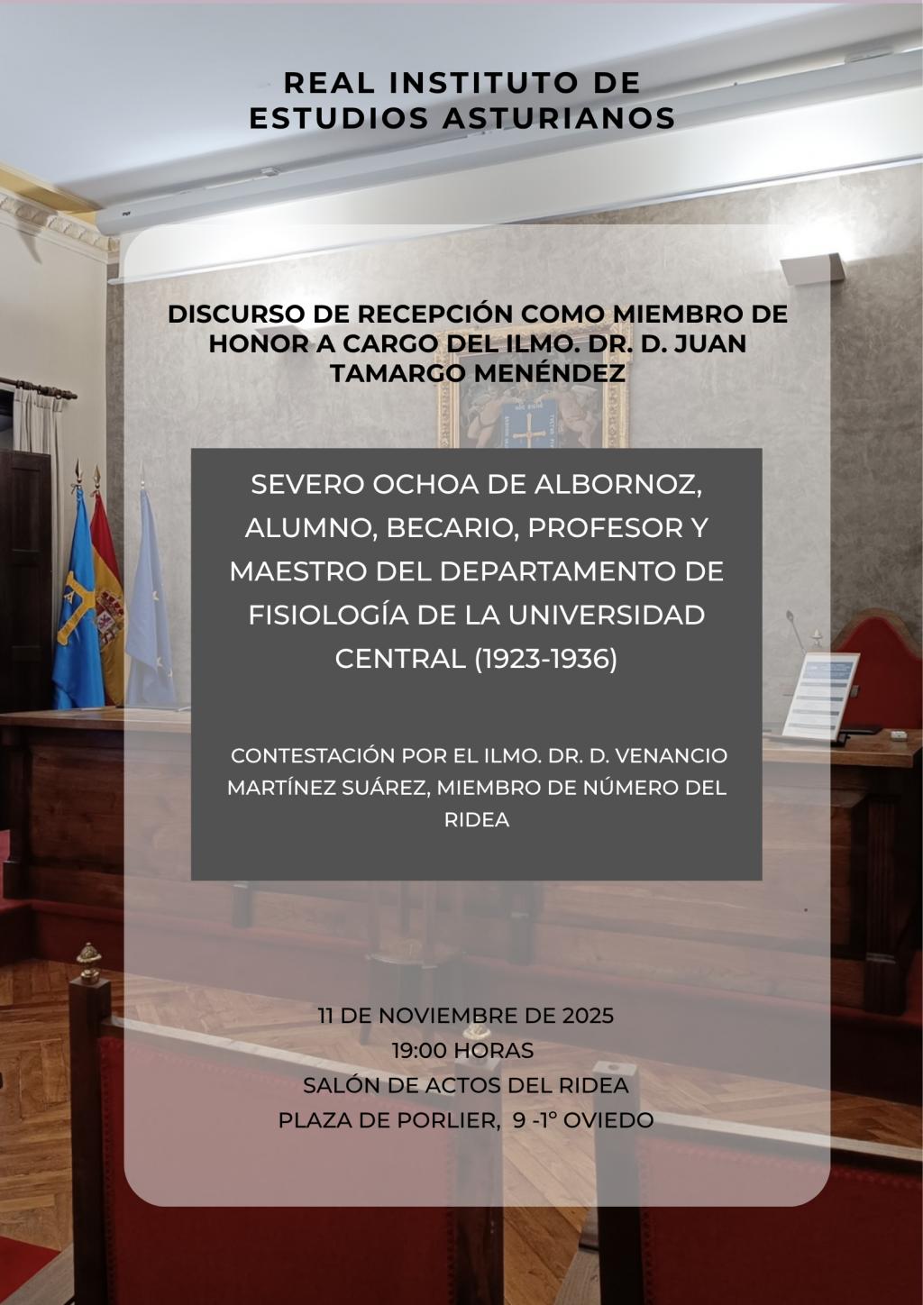 El Llanerense del Año 2013, Juan Tamargo Menéndez, será recibido como miembro de honor del Instituto de Estudios Asturianos, el día 11 de noviembre a las 19 horas, en el salón de actos del RIDEA, ubicado en la Plaza de Porlier. Tamargo fue nombrado miembro de honor el pasado mes de enero. El Doctor Tamargo realizará una ponencia sobre Severo Ocho de Albornoz, alumno, becario, profesor y maestro del Departamento de Fisiología de la Universidad Central (1923-1936).