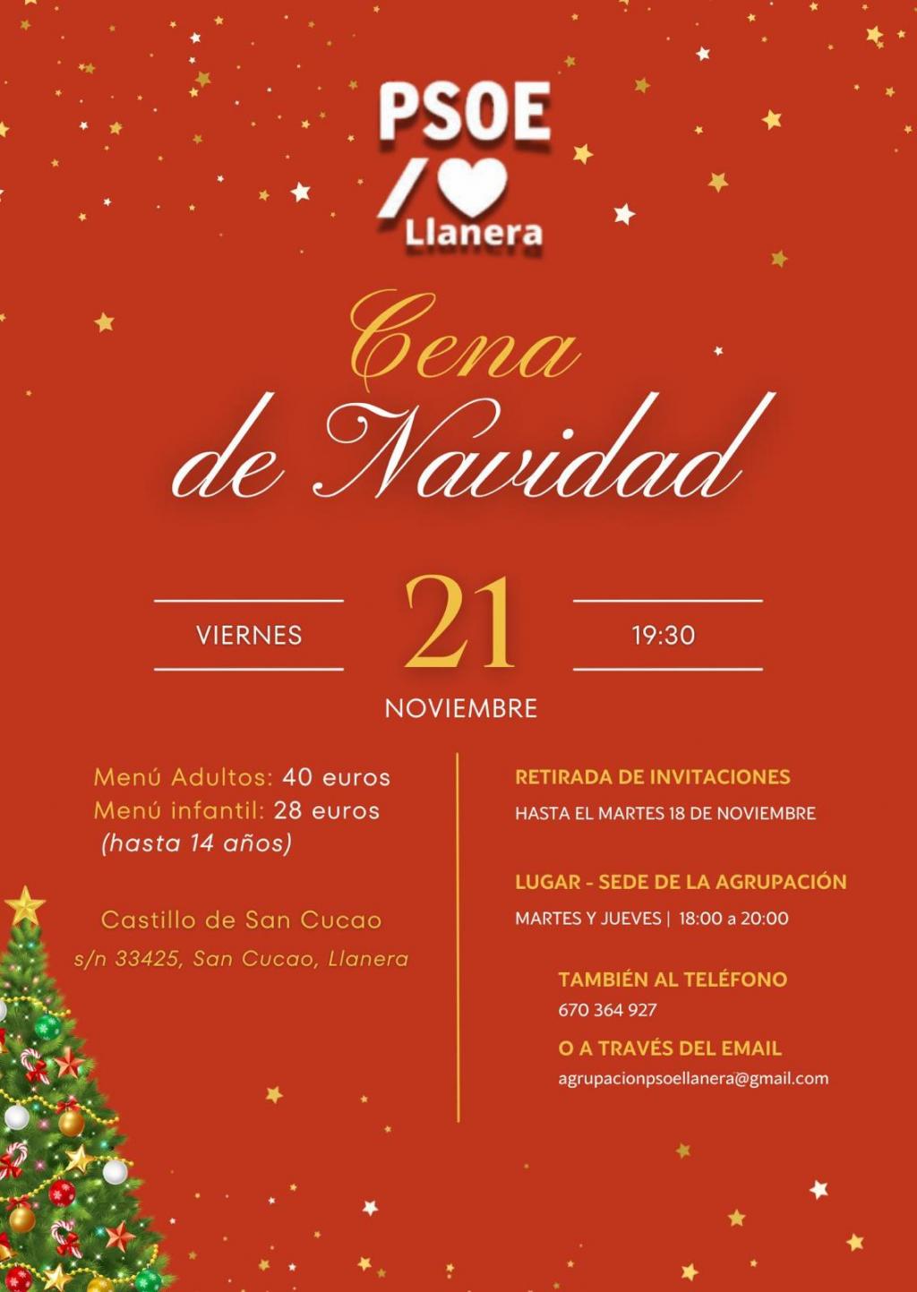 El PSOE de Llanera celebrará su tradicional cena de navidad el próximo viernes 21 de noviembre en el Castillo de San Cucao, Llanera.