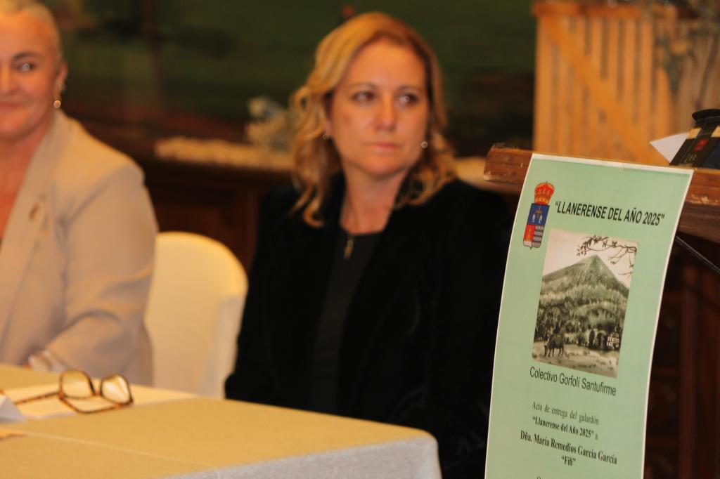 La alcaldesa de Llanera, Eva María Pérez, recordó que este es el primer año que asiste al evento como alcaldesa. “Es un orgullo para mí que este año haya sido el primer año que el premio sea a una mujer. Desde pequeña he aprendido a bailar a razón de la gaita, el tambor y la pandereta. Descubrí en ello algo muy importante, la memoria. Algo que no podemos ni debemos olvidar. Porque en esa memoria hay raíces, cultura y personas. Y aquí es donde quiero enmarcar a nuestra Llanerense del Año. Lo que celebramos hoy es el compromiso tenaz, discreto y constante de quien mantiene viva la dignidad de lo colectivo. De quien sabe que cuidar de los demás es también cuidar lo nuestro. Presente y proyectar el futuro. Porque nuestra Fifi nos cuida, nos enseña y es ejemplo. Y no lo hace sin pretensión ninguna. Con esa manera suya, tan natural, de estar siempre donde se necesita. Fifi no precisa de grandes gestos, ni titulares, su fuerza está en la constancia, en la ternura y en el trabajo. Ella pertenece a esa generación que ha sido testigo de una Llanera que cambió, que creció y que se modernizó. Pero que sigue teniendo el alma de siempre. Y es que gracias a personas como ella no perdemos el vínculo con lo esencial, con lo que somos y con lo que nos define. Al nombrarte Llanerense del Año, no te rinde el solo homenaje. Afirma con claridad y sin nostalgia que la Llanera que queremos construir se parece mucho a ti. Trabajadora, inquieta, sensible, comprometida y orgullosa de su pasado. Pero siempre mirando adelante”, comentó.