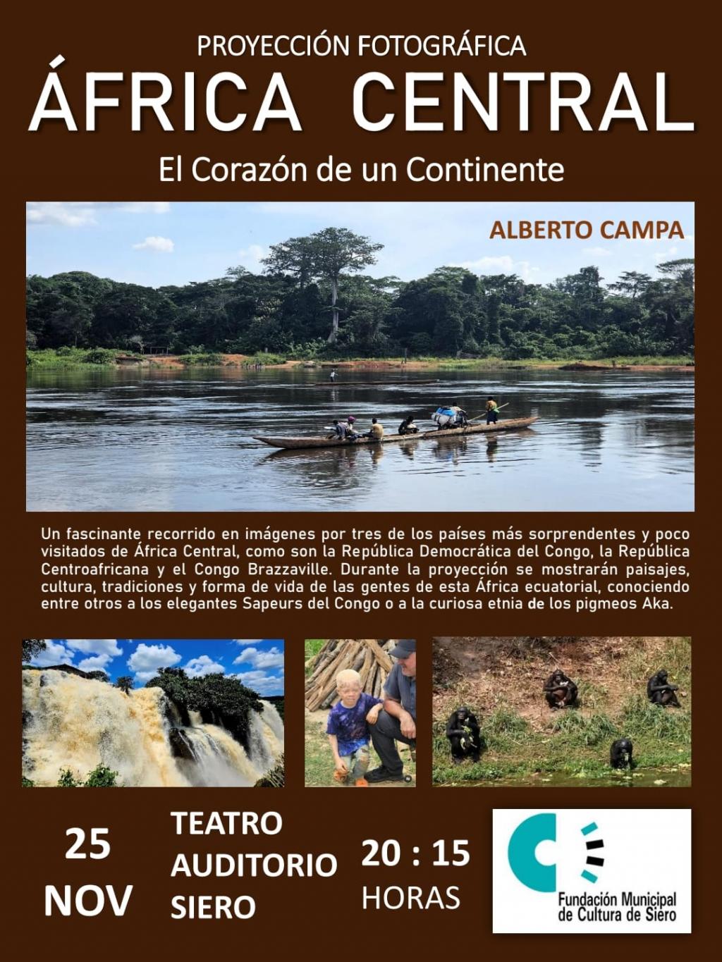 El sierense y trotamundos, Alberto Campa, ofrecerá una charla sobre su viaje a “África Central, el Corazón de un continente”, el martes 25 de noviembre en el Teatro Auditorio de Pola de Siero a las 20.15 horas.