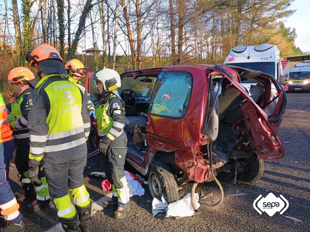 El Centro de Coordinación de Emergencias del 112 Asturias recibió el aviso a las 14.48 horas. En la llamada informaban de la colisión de varios vehículos con posibles personas heridas, en principio sin atrapados. Fue posteriormente, a las 15.30 horas, cuando se reclamó la presencia de bomberos puesto que uno de los afectados no podía salir por sus medios del interior del coche.