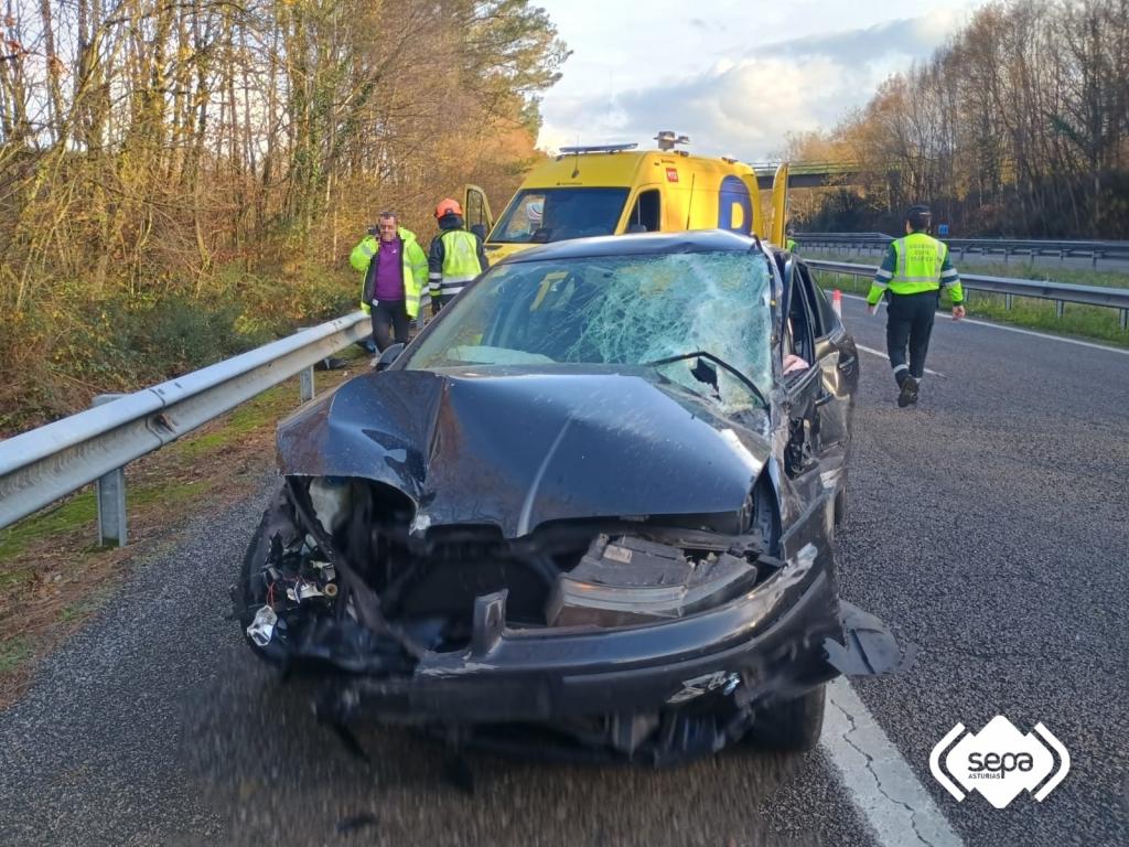 Según los datos facilitados por el Servicio de Atención Médica Urgente (SAMU) los dos heridos, dos varones, han sido trasladados, con pronóstico reservado, para más pruebas, al Hospital Universitario Central de Asturias (HUCA), en Oviedo. El de mayor consideración, de 44 años, fue atendido y evacuado por el equipo médico de la UVI-móvil ovetense. El hombre fue excarcelado del interior del coche por efectivos de Bomberos del Servicio de Emergencias del Principado de Asturias (SEPA) con base en el parque de La Morgal. El otro herido fue trasladado al centro hospitalario en una ambulancia convencional.