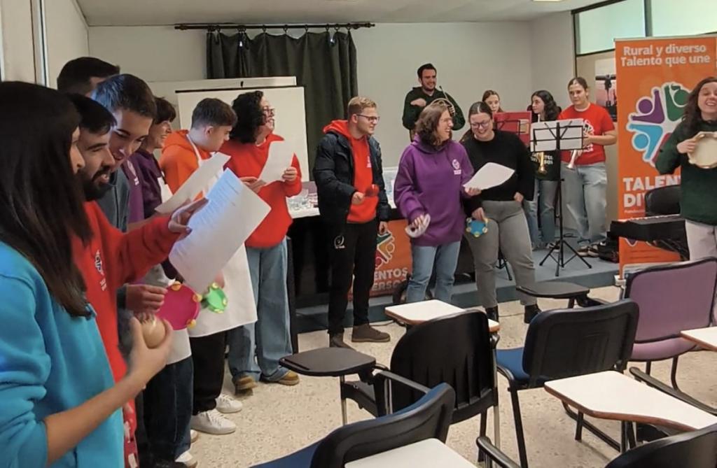 El apartado cultural tuvo también un papel relevante como espacio de expresión y empoderamiento emocional. Nacho participó en el bloque musical junto a la artista asturiana Vero Rubio, mostrando cómo la música se convierte en una herramienta de bienestar, comunicación y fortalecimiento de la identidad personal. La jornada contó además con el acompañamiento del grupo Tururú, que puso música a distintos momentos del programa. El cierre tuvo lugar en la última parte del encuentro con un pequeño concierto, que finalizó con la interpretación de un villancico especial, compartido entre profesionales, participantes y público asistente.