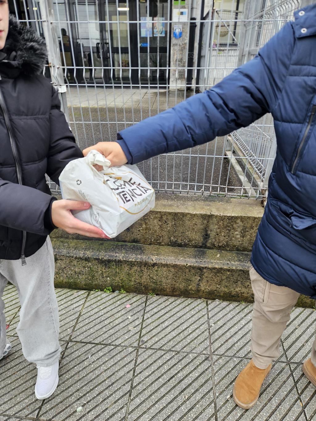 Los alumnos del IES Astures de Lugones hicieron una cadena humana para llevar los alimentos donados a Cáritas de la localidad. Con esta iniciativa llevaron la comida desde el centro hasta la iglesia San Félix. Esta donación lleva realizándose varios años y la idea es ampliarla a los tres colegios públicos de Lugones de cara al año que viene.