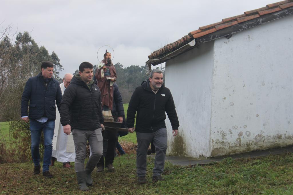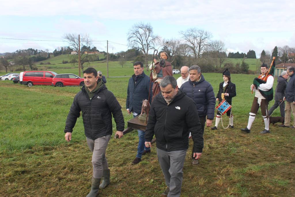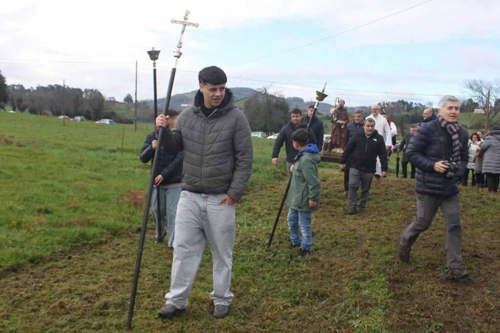 A pesar del frío los feligreses acudieron como manda la tradición a la misa, la procesión y posteriormente la subasta del ramu. La procesión y la misa estuvieron acompañadas de una pareja de gaita y tambor.