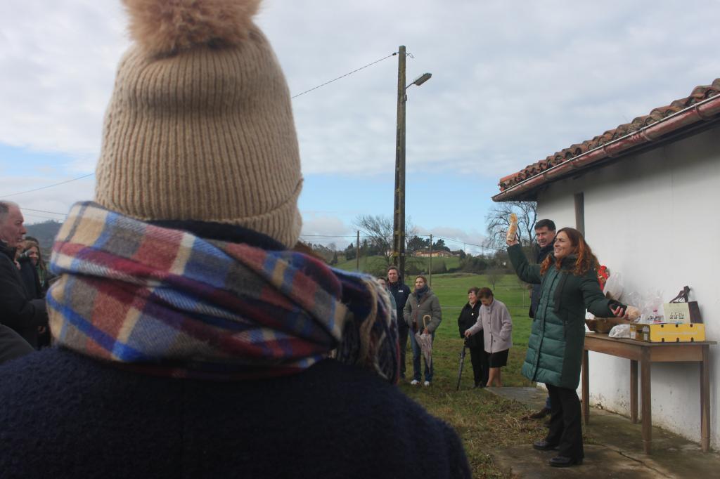 Después, la hija de José Manuel Vega “Casas”, Marta, fue la encargada de recoger la tradición de la Cofradía que realizaba su padre que es llevar la voz cantante en la subasta, que contó con productos alimentarios caseros y asturianos.