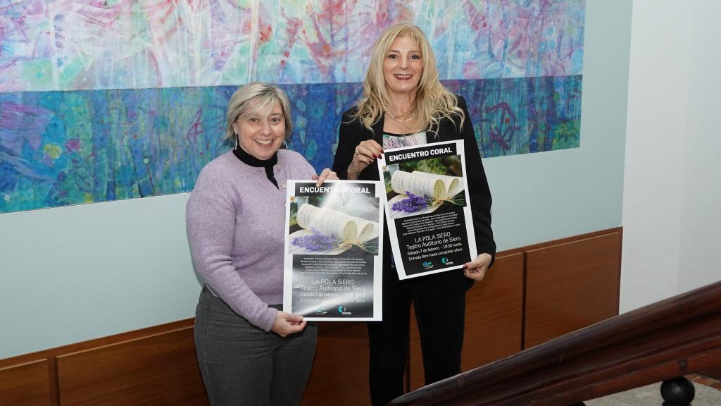 La concejala de Cultura, Recursos Humanos y Policía Local, Aurora Cienfuegos, junto a directora de la Fundación Municipal de Cultura de Siero, Isabel González, presentó una nueva edición del Encuentro Coral de Siero. El evento tendrá lugar el 7 de febrero, a las 19:30 horas, en el Teatro Auditorio de Pola de Siero. La entrada es libre hasta completar el aforo de la sala.