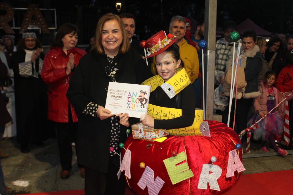 De 16 a 18 horas tuvo lugar el desfile del centenar de participantes y después el reparto del chocolate. Después las charangas El Alboroto y Xiranda Brass Band animaron el ambiente hasta que comenzó la entrega de premios. Los miembros del jurado de esta edición fueron: Ana Isabel Del Valle, de Llanera sin Barreras, José Antonio Carracedo, de la Coral Polifónica de Llanera, Irene García, de la Asociación Santa Apolonia de Tuernes, Claudia Llorente, de Vecinos de Posada, Pablo Juan García, de la Asociación Amigos de Lugo de Llanera y Rubén García, de la Asociación de Vecinos de San Cucufate.