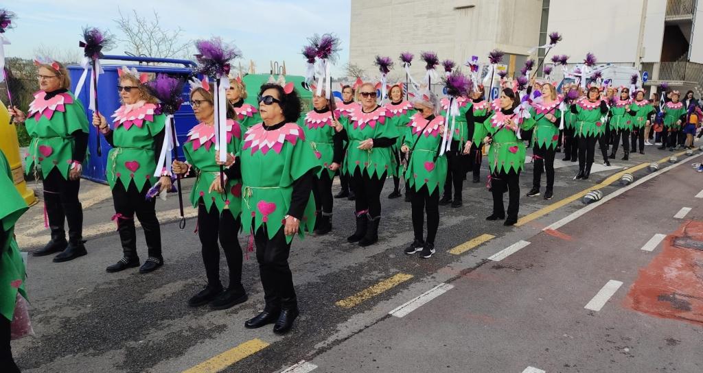 El grupo de mayores desfiló con entusiasmo, en algunos casos acompañado por sus nietos, en una muestra intergeneracional que fue muy aplaudida por los vecinos. La participación conjunta reflejó un ambiente de cercanía, tradición y convivencia familiar que enriqueció aún más la jornada festiva.