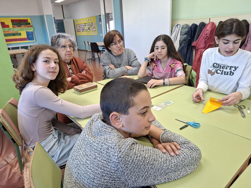 El alumnado de 50ymás compartió su destreza manual y su experiencia en labores textiles, mientras que las niñas y niños aportarán su creatividad y su mirada actual. Además, el grupo de 6º enseñó a las personas adultas el taller “Del PowerPoint a la baraja”, una propuesta en la que trabajarán presentaciones digitales y darán a conocer una serie de juegos de cartas.