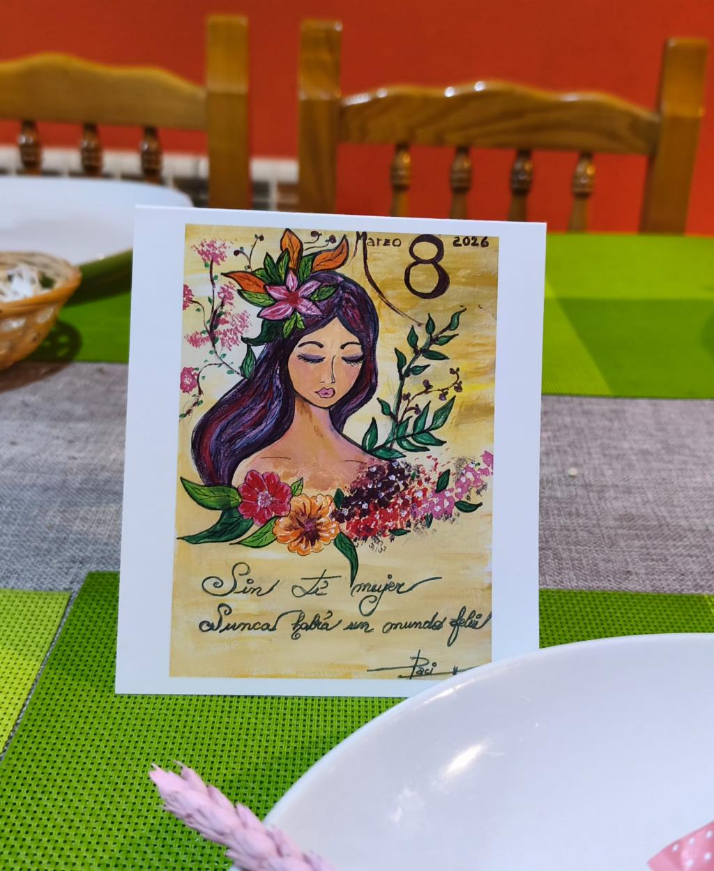 Durante el acto, Mari Paz Menéndez quiso tener un detalle con todas las asistentes, entregando a cada una un dibujo y una espiga de trigo rosa como símbolo de la feminidad.