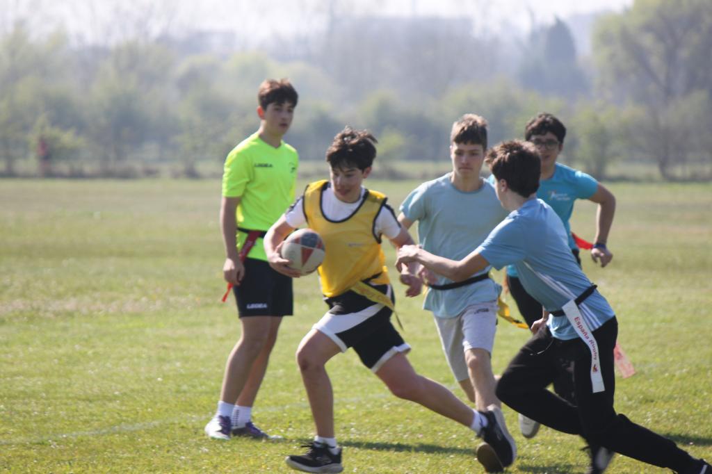 La modalidad elegida fue el rugby cinta, una variante sin contacto físico en la que los jugadores portan un cinturón con cintas que sustituyen al placaje. Cuando un oponente retira una de estas cintas, el jugador con balón debe detenerse y pasar a un compañero, garantizando así una práctica segura y accesible.