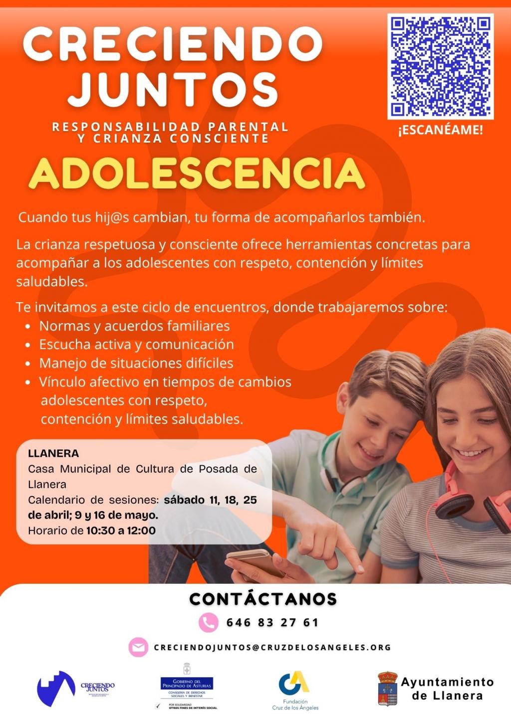 La concejalía de Infancia del Ayuntamiento de Llanera, en el marco del Plan Municipal de Infancia y Adolescencia, presenta el programa “Creciendo Juntos”, una iniciativa centrada en la responsabilidad parental y la crianza consciente. Este proyecto se desarrolla en colaboración con la Fundación Cruz de los Ángeles y cuenta con el apoyo del Gobierno del Principado de Asturias.