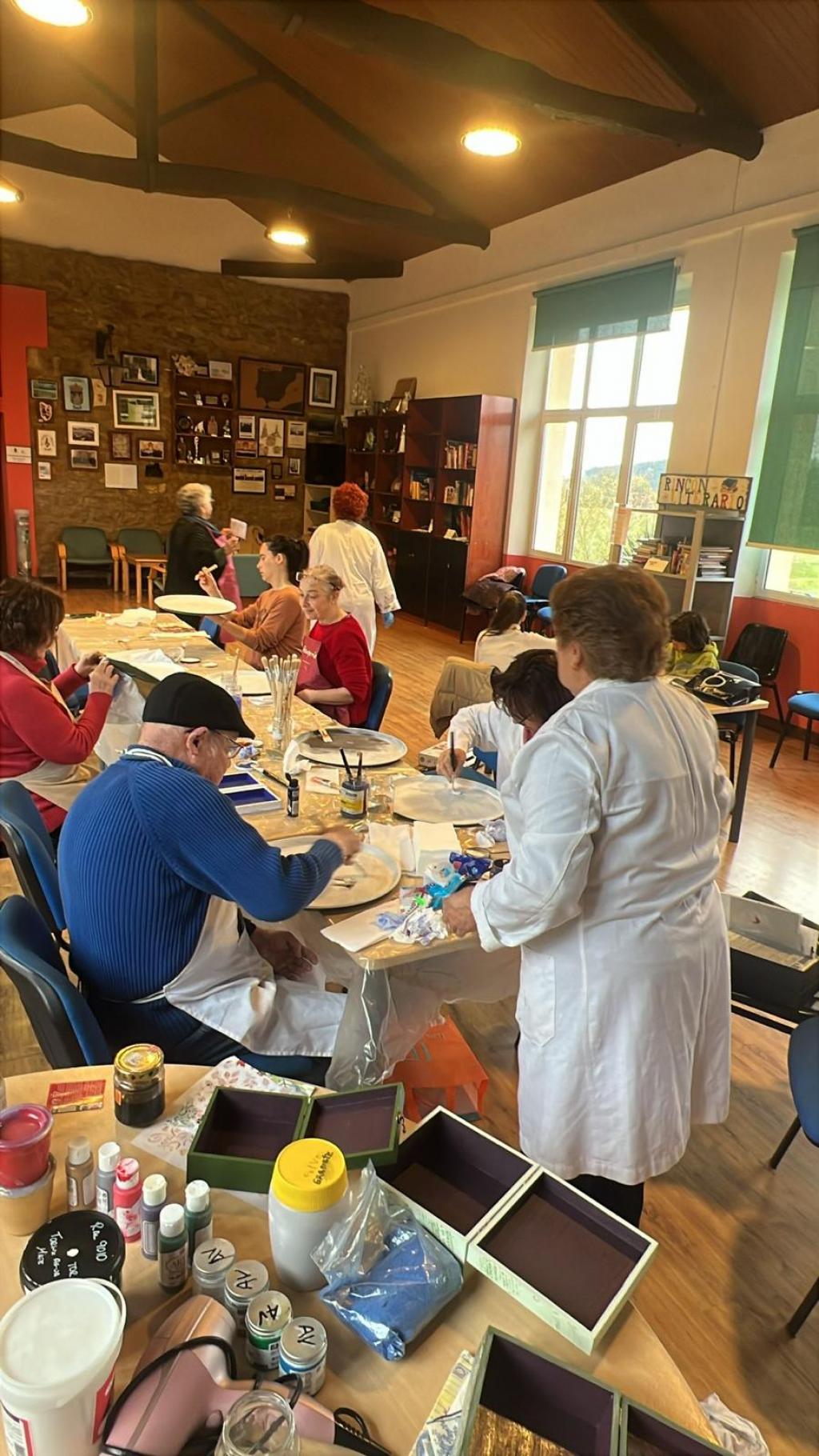 Durante los dos talleres de manualidades celebrados en marzo, impartidos por Justa Bernardo, las personas participantes han demostrado —en mayor o menor medida— sus habilidades artísticas. Como colofón, a finales de abril quienes han asistido a estos talleres tendrán la oportunidad de dar los últimos retoques a sus trabajos.