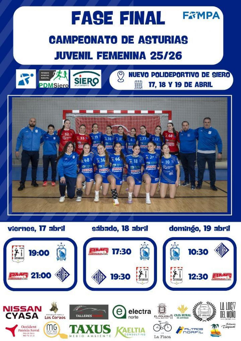 - La fase final juvenil femenina de balonmano se jugará este fin de semana en Pola de Siero