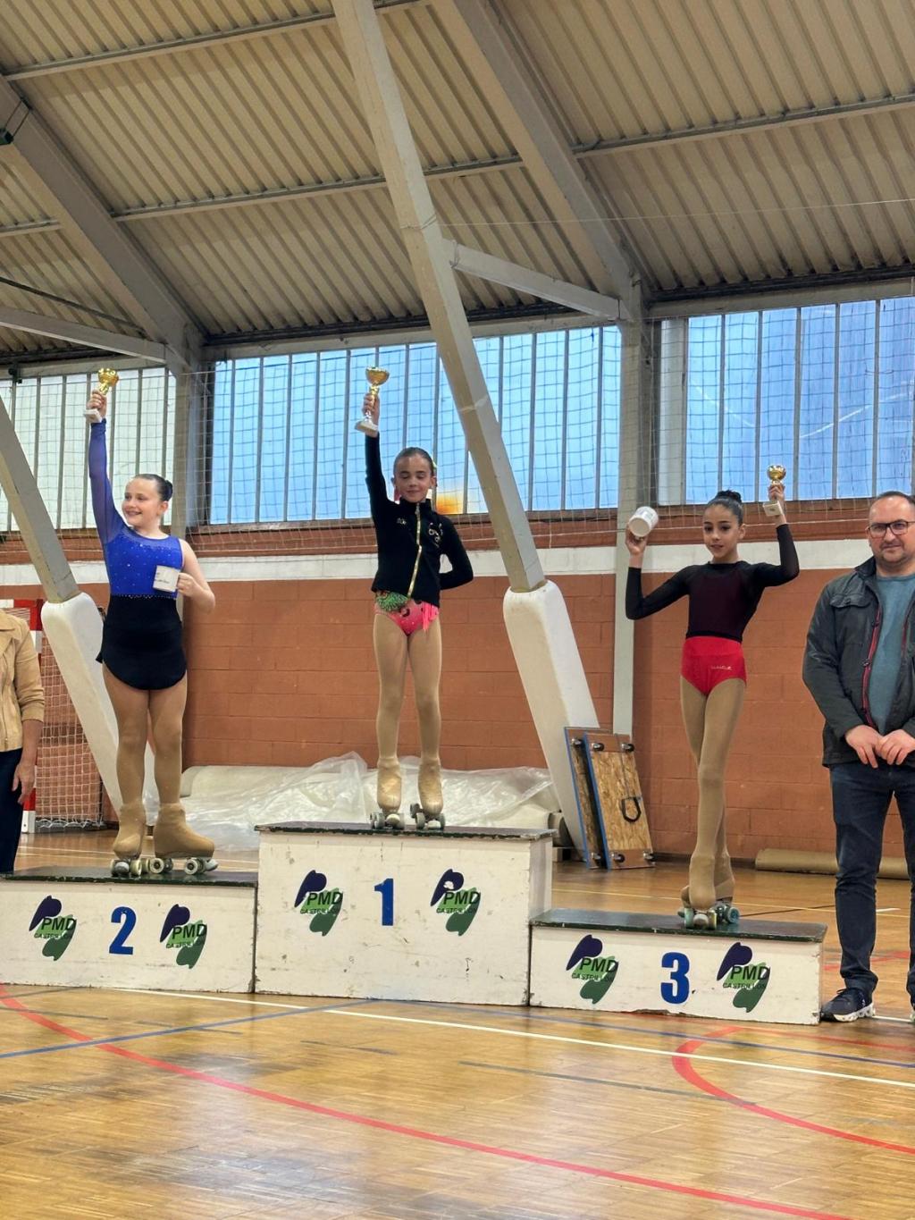 La actividad arrancó el sábado 18 con el desplazamiento a Castrillón, donde el club acudió con cuatro patinadores tras recibir una invitación para participar en el trofeo local. La expedición firmó una sólida actuación colectiva, que tuvo como momento más destacado el tercer puesto logrado por Martina Naredo en la categoría Alevín B, un resultado que reconoce su progresión y trabajo en pista.